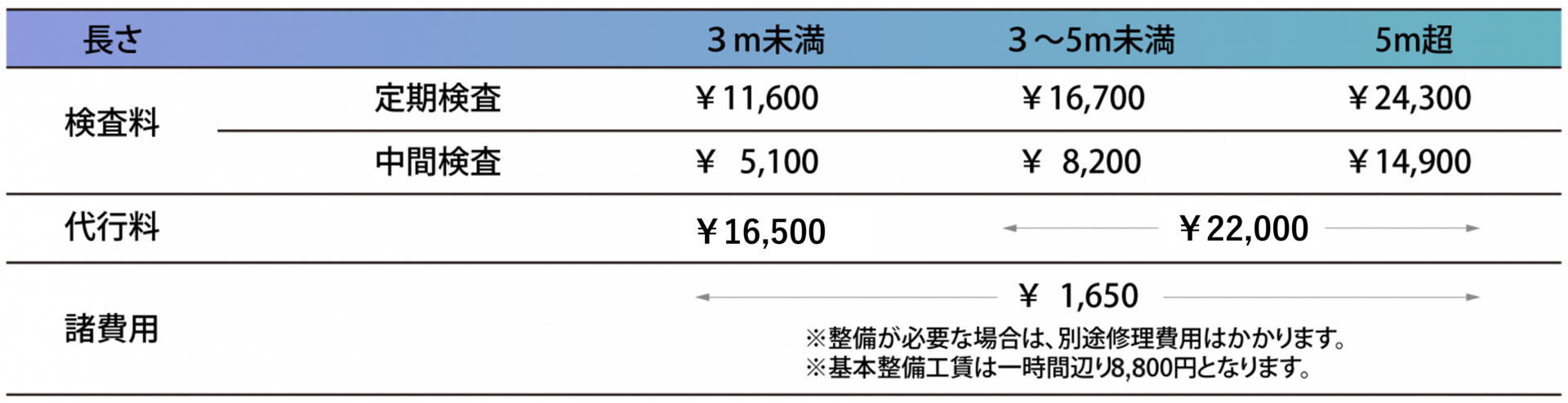 【船検 料金表】